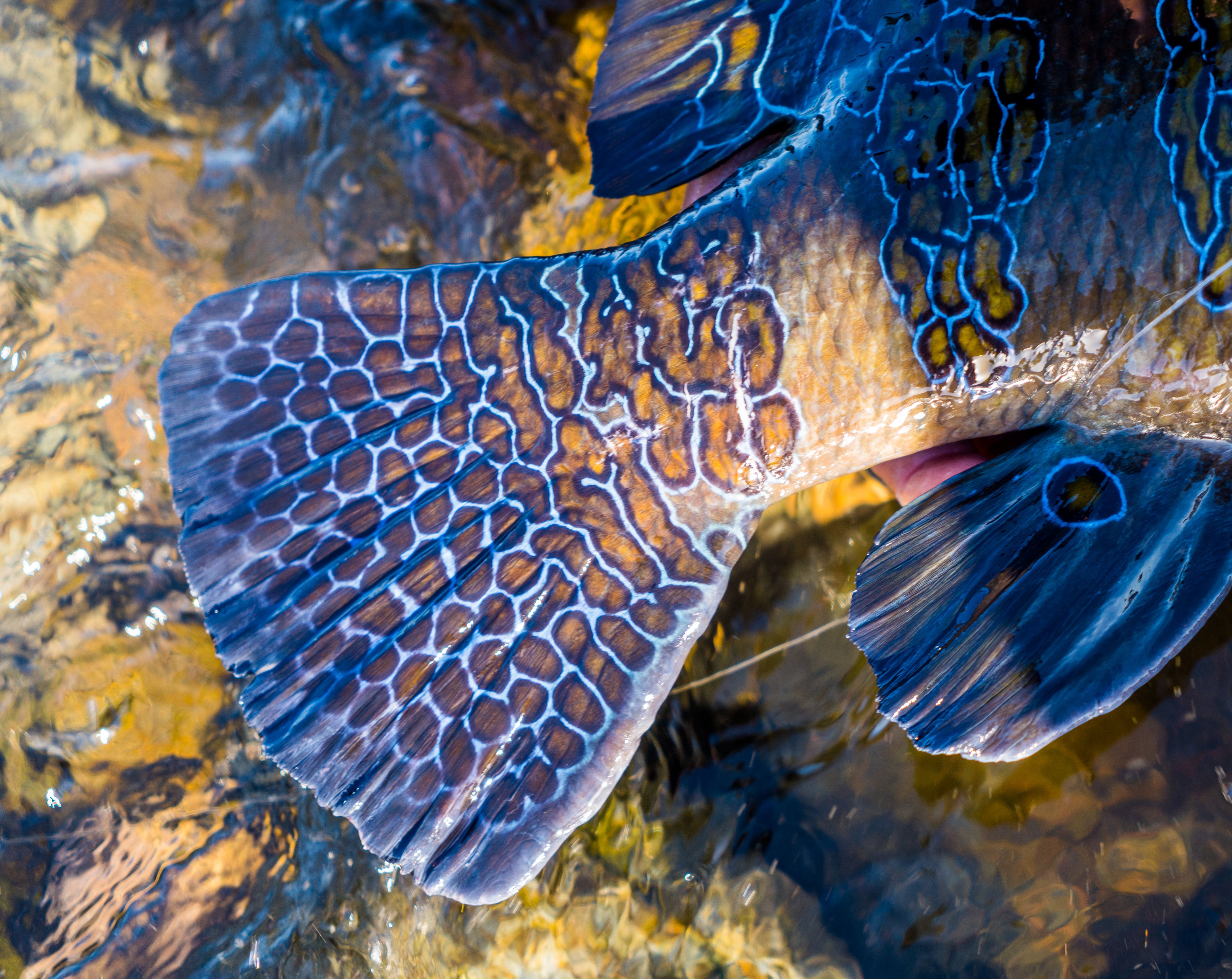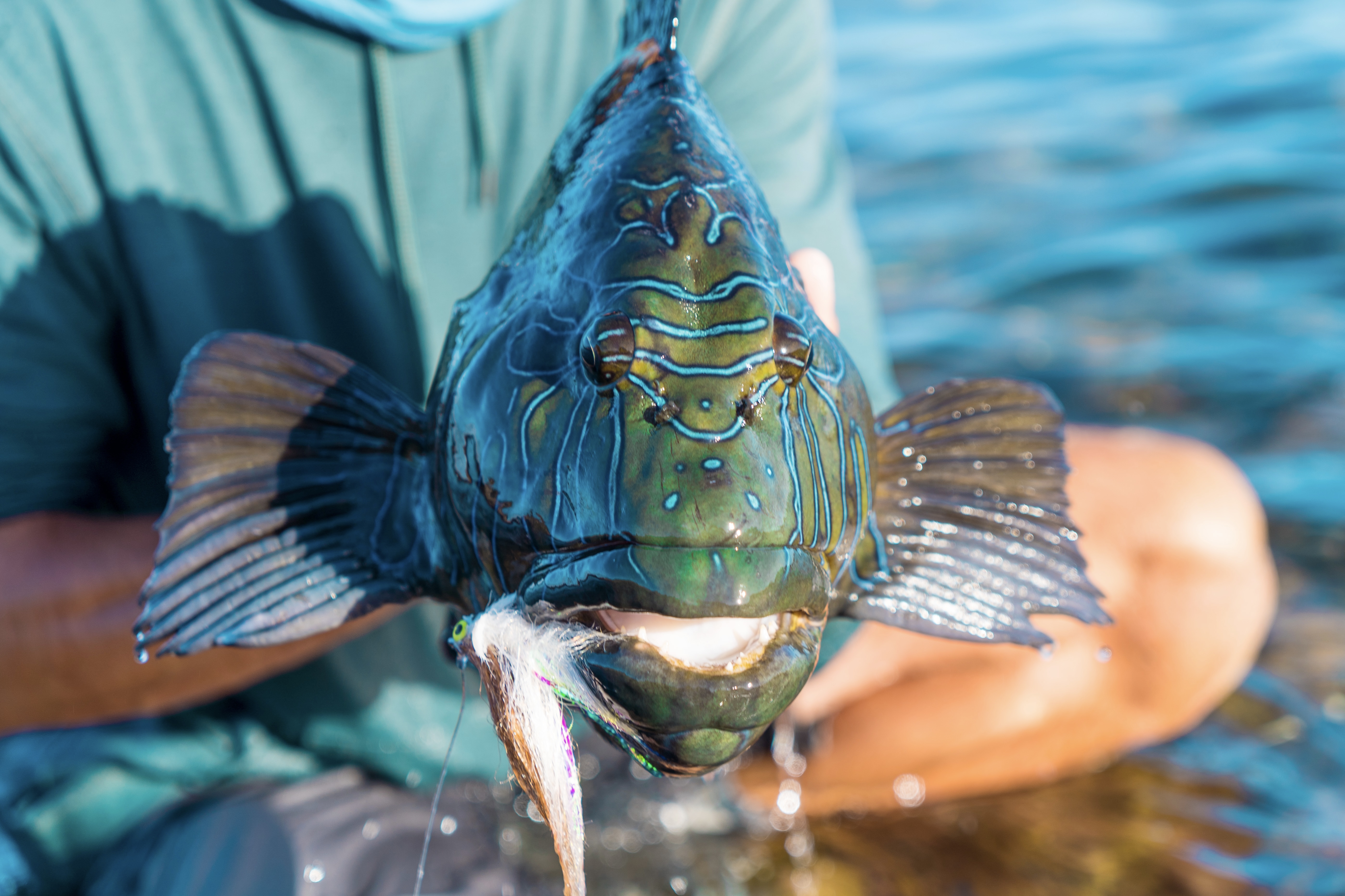 After pulling him out of the volcanic rocks and landing him on the beach, I began shouting in awe as my good friend Jefe Feczko was in full sprint and excitement, making his way over to assist. We could hardly keep it together. This is the largest Giant Hawkfish we had ever seen and was on par with the world record. The aggression and fight of this alien-looking fish was unmatched. The biggest take away from this is to keep the fly in the water and keep exploring and pushing to try new things.
