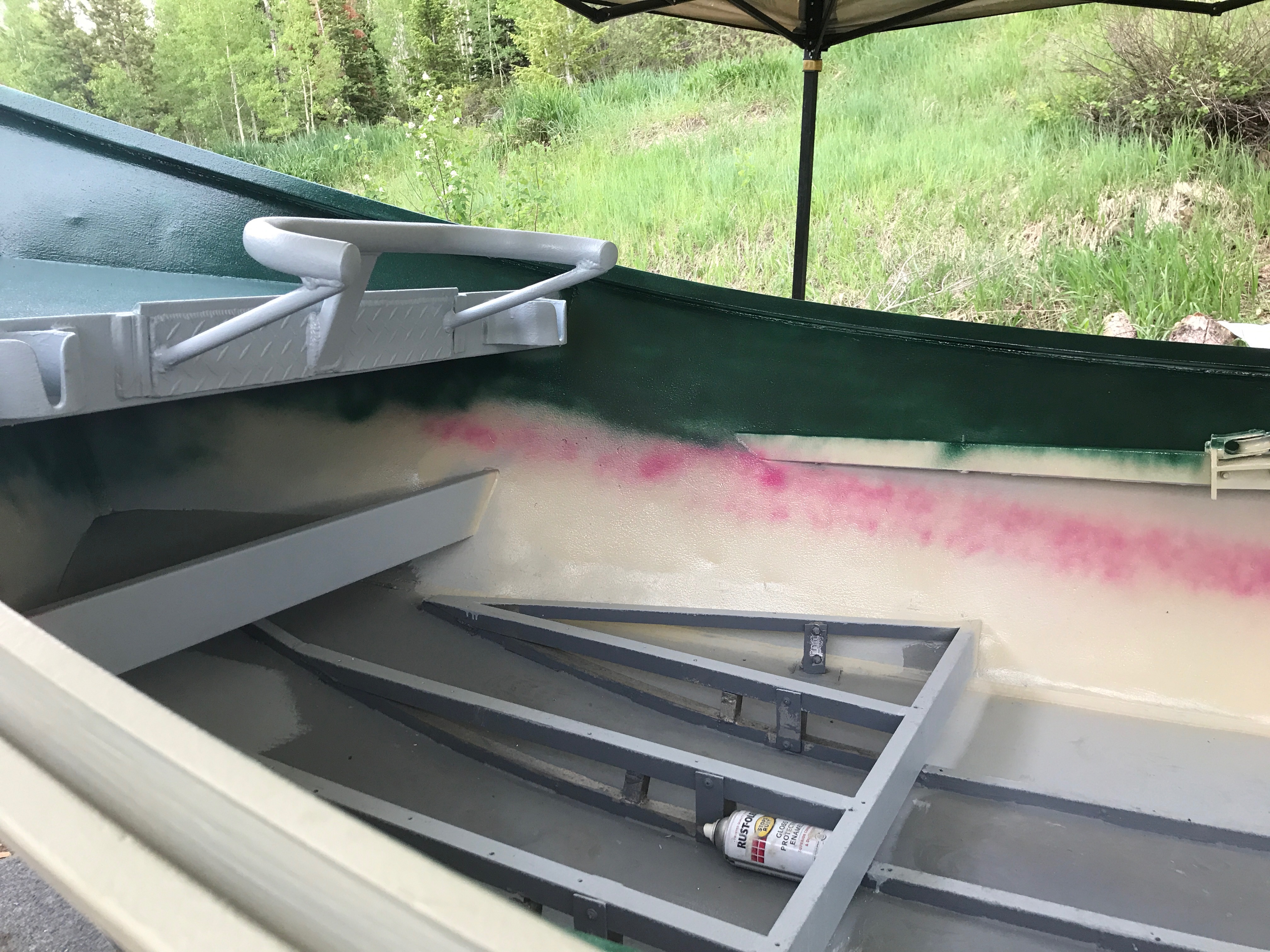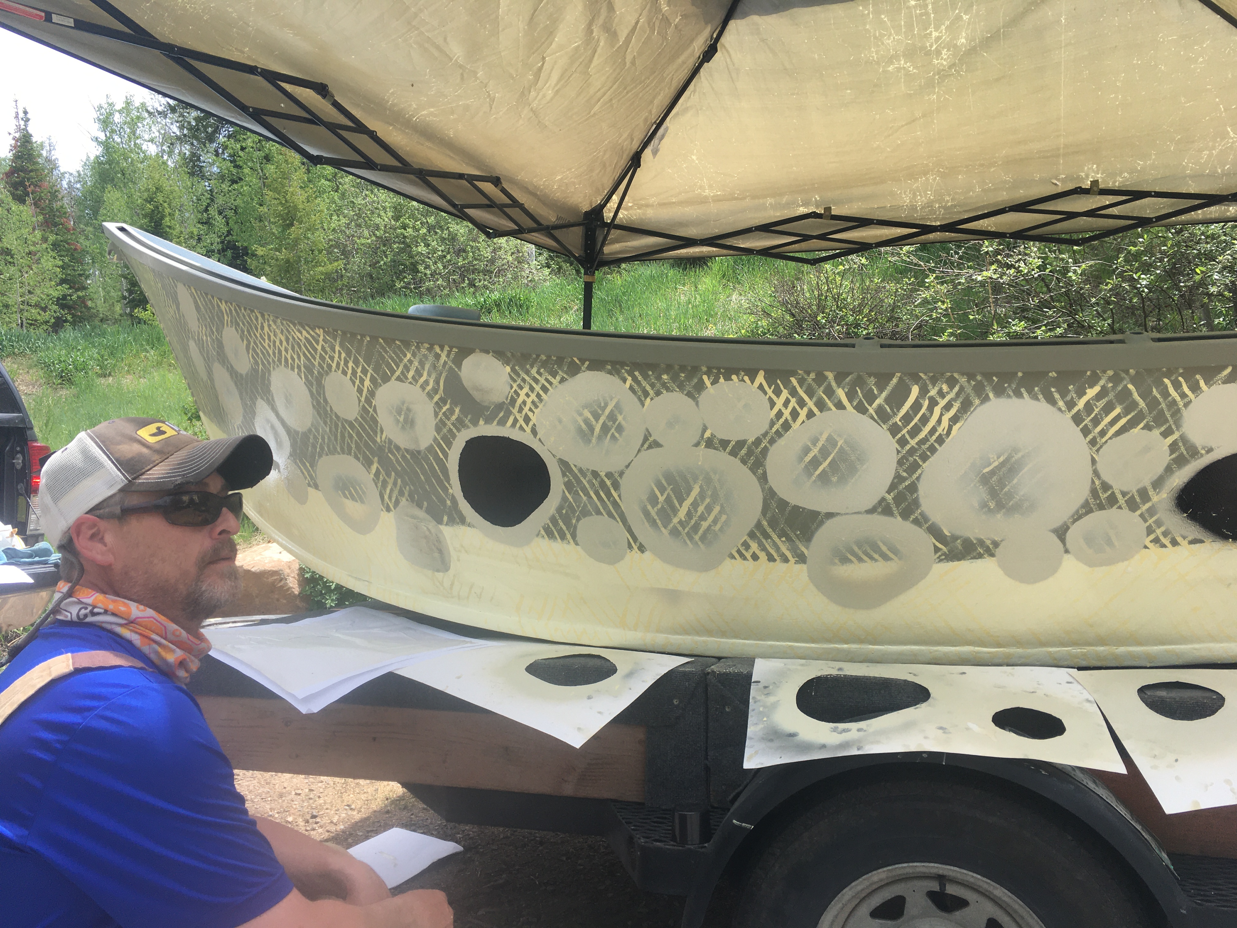 Mike Salomone is a fly fishing guide in the summers and art teacher during the school year. With some more time off than usual earlier this summer, he decided to paint his buddy’s 26-year-old Willie Aluminum drift boat to give it a little facelift. Here are the photos and captions of his project.