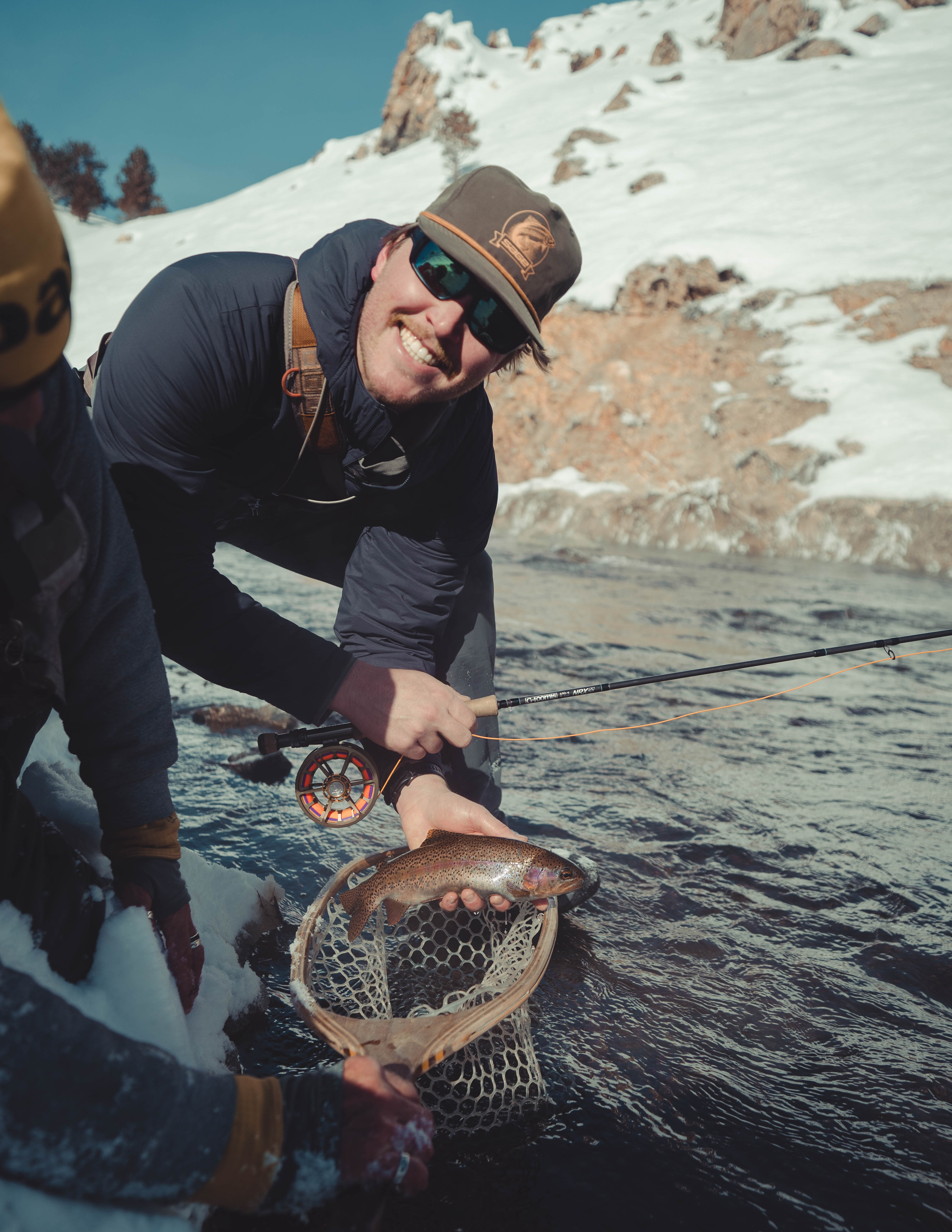 We heard about the one-of-a-kind fishing opportunities Mammoth Lakes offers in mid-winter. Mammoth is a small mountain town sitting at the base of one of the most iconic ski mountains in the world. This season, Mammoth is boasting one of North America’s highest snow totals, leading this spring to healthy runoff and colder water temperatures later in the summer. But until the weather warms up, we were layering up and getting our gear together for our first day of fishing.